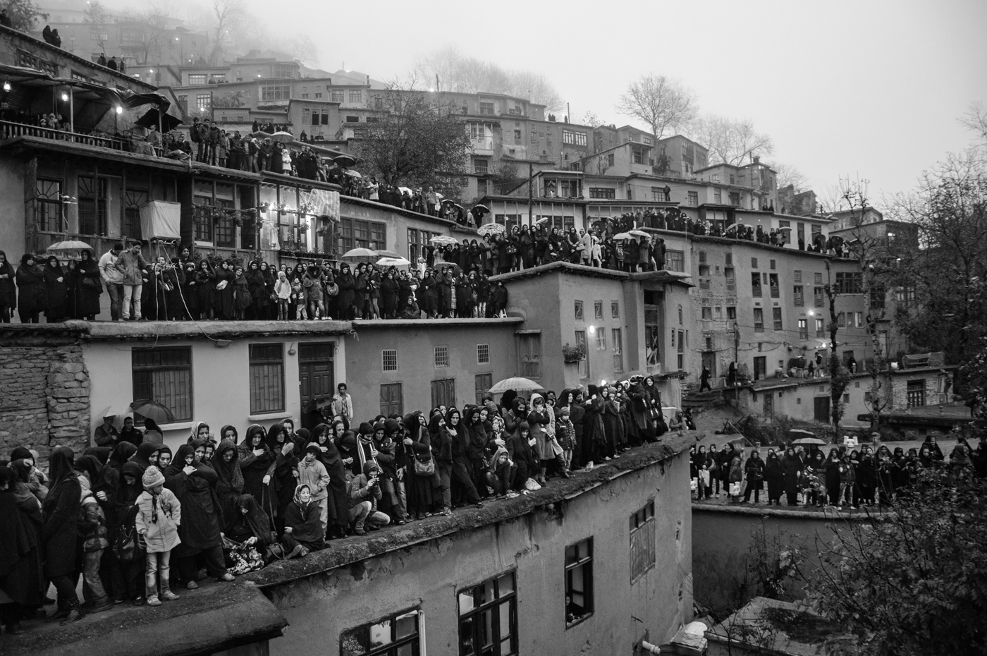 Primarily a male-centric event, women traditionally observe from rooftops. Following the ceremony, each community processes back to their own neighborhoods with their ensigns, continuing their mourning and paying tribute to the ensign of Imam Hussain along the way.